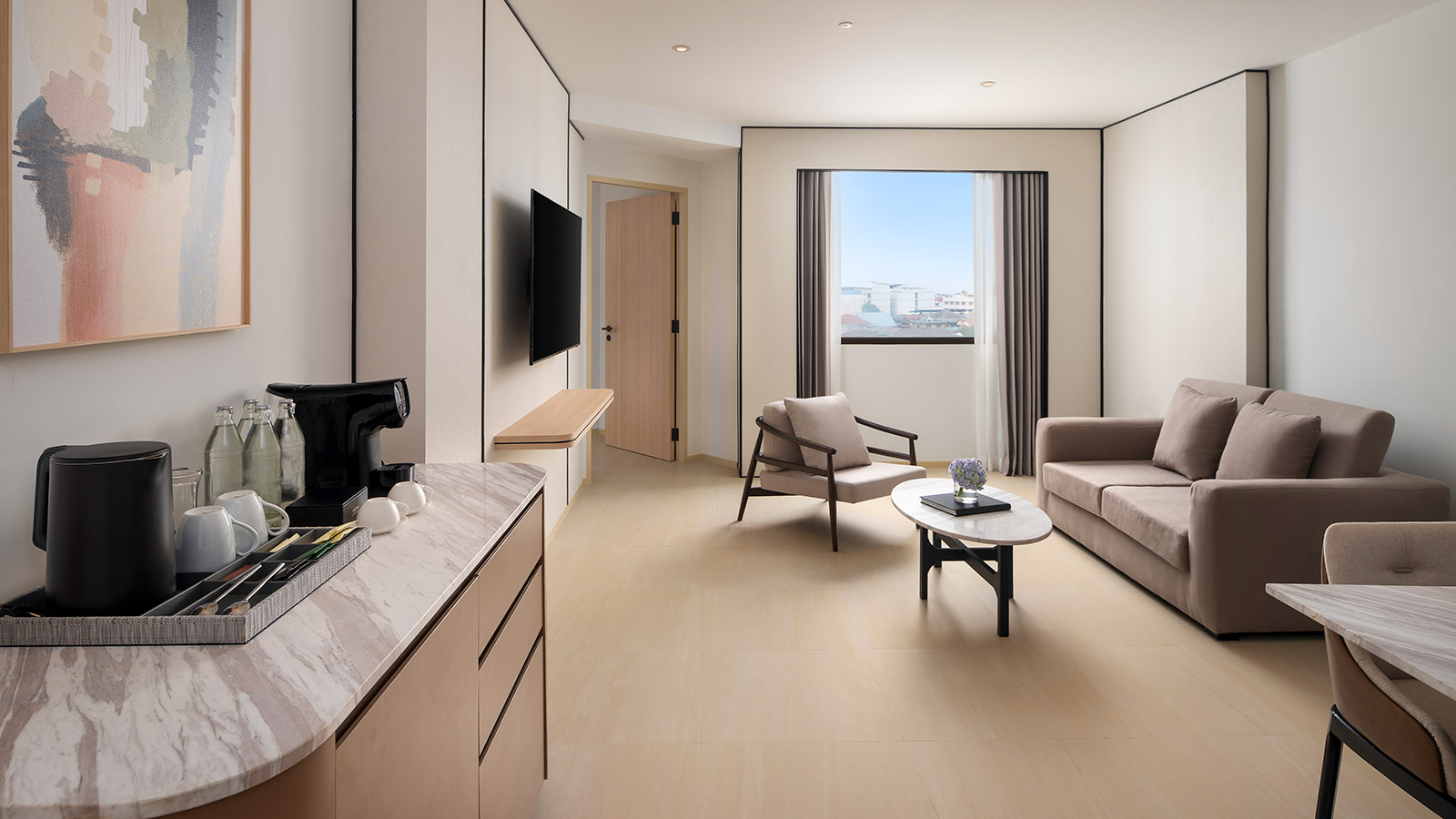 Bring everyone together in the Premier Family Room, where comfort meets connection. Thoughtfully designed for families or friends travelling together, this spacious haven features one king bed and two single beds, modern décor, and soothing tones that create an inviting sense of home. With free high-speed Wi-Fi and family-friendly touches, it’s the perfect space to relax and reconnect after a day of exploring.