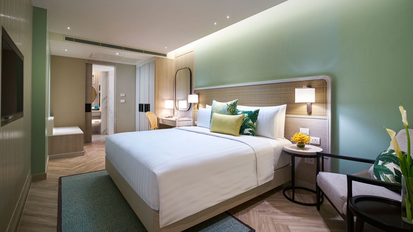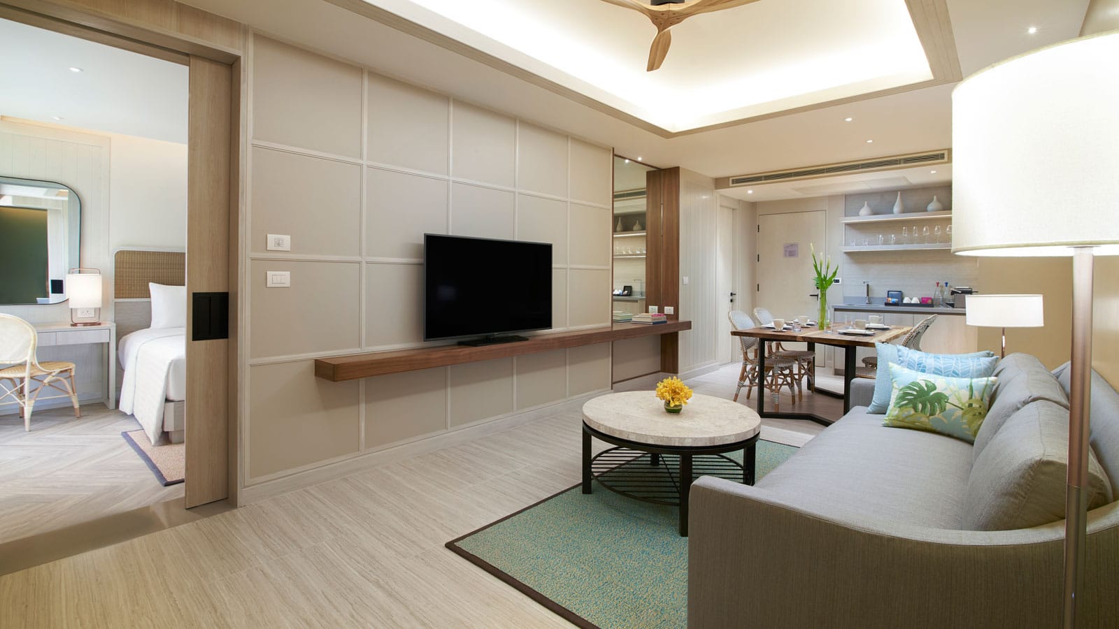 Brighten your world with effortless poolside living in our Amari Suite Poolside rooms, where direct access to the water from your balcony adds a refreshing touch to every moment. Designed for comfort and convenience, this two-bedroom suite in Pattaya features a spacious living and dining room that’s perfect for relaxing together. The master bedroom includes a king-size bed, while the second bedroom offers two queen-size beds, giving families and groups plenty of room to unwind. With modern amenities and a calm, open layout – including direct pool access – we bring you the best suites Amari has to offer.