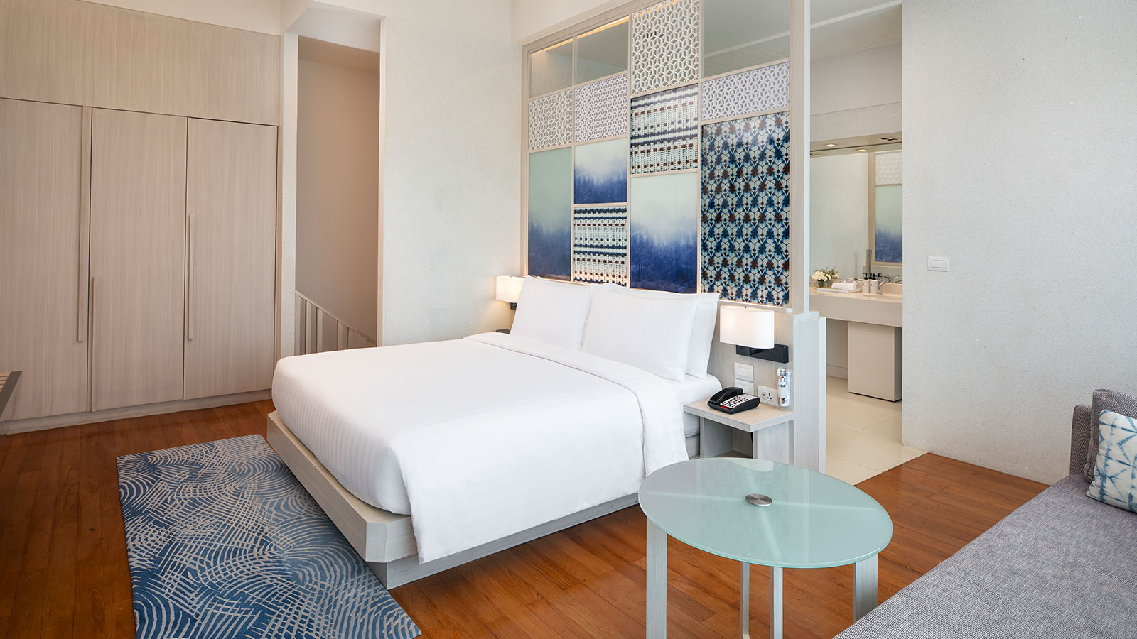 Spanning two floors, our Club Duplex deliver a secluded and elevated stay for guests seeking exceptional Pattaya beach accommodation, framed by glistening ocean views. Exclusive access to Club Napha includes breakfast, early evening cocktails and canapés, adding signature Amari warmth. Upstairs, a king-sized bed offers a peaceful retreat, while the lower level features a separate living and dining area, kitchenette and private balcony overlooking the coast. With generous space, bright interiors and added privacy, these rooms are ideal for travellers seeking comfort, exclusivity and a meaningful connection to the sea.
